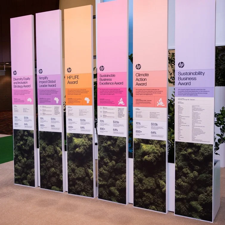 I was tasked with creating the visual identity for HP Amplify Partner Conference and applying it to all aspects of the show. I designed and directed presentations, signage, the opening moment, web and app assets, + stage design and lighting.